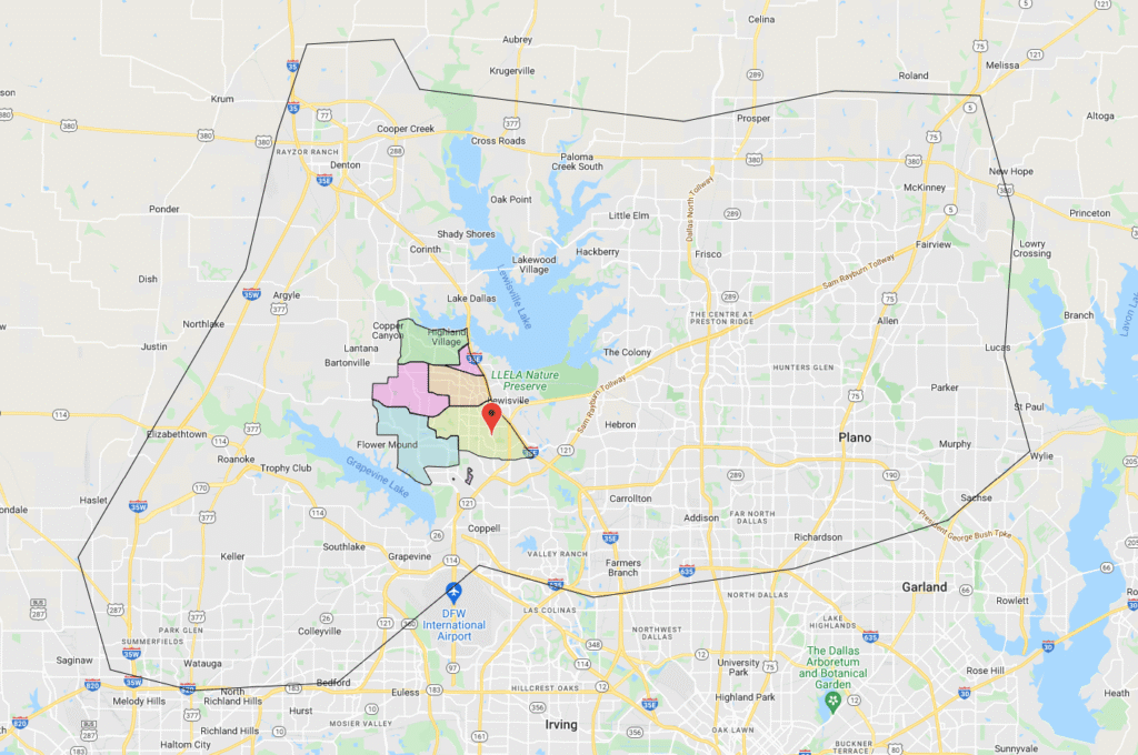 Our service area includes the majority of the North DFW metroplex. Including Plano, Richardson, McKinney, Frisco, Murphy, Prosper, Little Elm, Allen, Carrollton, Coppell, Lewisville, Flower Mound, Highland Village, Lantana, Argyle, Grapevine, Southlake, Keller, Northlake, North Richland Hills, Farmers Branch, The Colony, North Dallas, Far North Fort Worth, Double Oak, Copper Canyon, Denton, Corinth, Trophy Club, Roanoke, and surrounding areas.